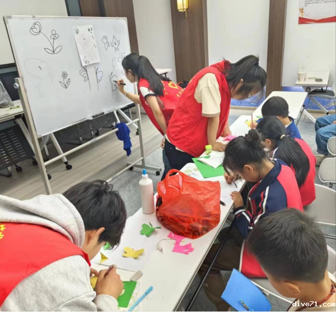 接着,志愿者们向孩子们介绍绘画和舞蹈的基础知识,图文并茂地讲解一些具体的技巧,带着孩子们进行练习。孩子们积极表现,志愿者们耐心教学,课堂氛围良好。