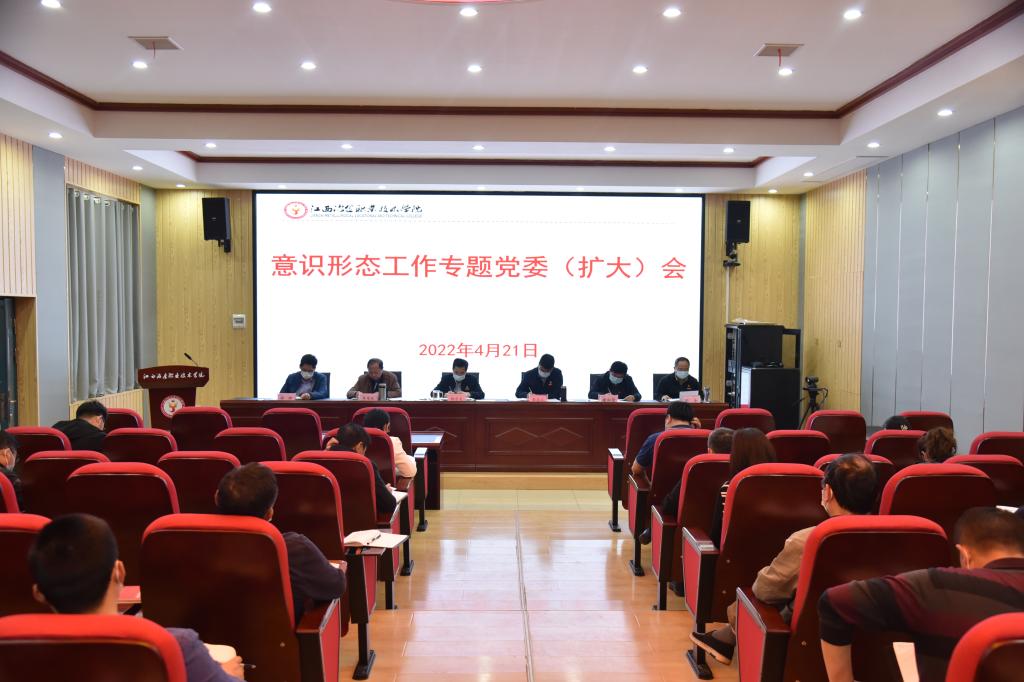 4月21日下午,学校在思政讲堂召开党委(扩大)会专题研究意识形态工作,分析研判当前意识形态工作形势,部署下一步工作。党委书记杨乐文主持并讲话,党委领导班子全体成员出席,各部门负责人、党支部书记参加会议。