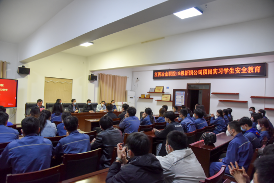 参会的新钢公司各单位领导分别讲话。他们结合各自单位生产工艺特色,就学生顶岗实习的安全注意事项向同学们提出具体要求。