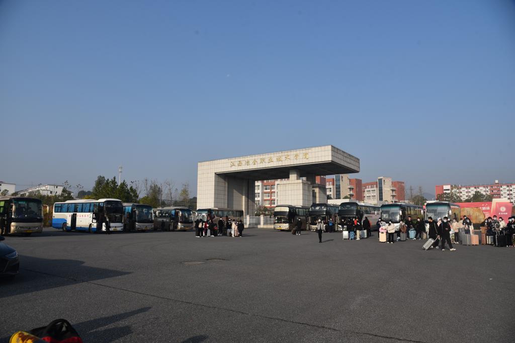在志愿者们的指挥下,同学们戴好口罩,背着双肩包,手拖行李箱,有序走出南大门,排队登车,井然有序。据学工处通知安排,学校后续将会根据乘坐人数,动态调整“爱心专线”的车次和时间。