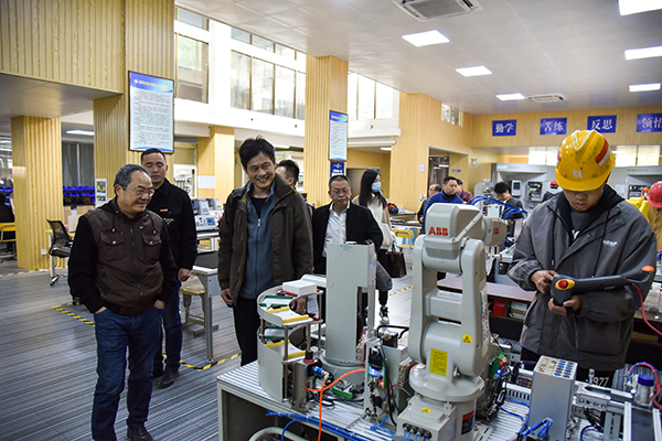 会后,调研组实地考察了学校智能制造工程中心、黄辉技能大师工作室、新钢集团机械设备点检员培训基地,对学校教育人才供给情况做了深入了解。