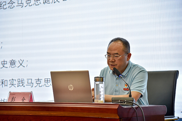 5月15日下午,学校主题教育读书班在思政讲堂开展第二场学习研讨。研讨活动围绕“学习和实践马克思主义”主题,重点学习“在纪念马克思诞辰200周年大会上的讲话”。校领导杨乐文、郭志江、谢翀、彭全、潘山,各教学单位党政负责人、部门负责人参加学习。彭全领学并作研讨发言。