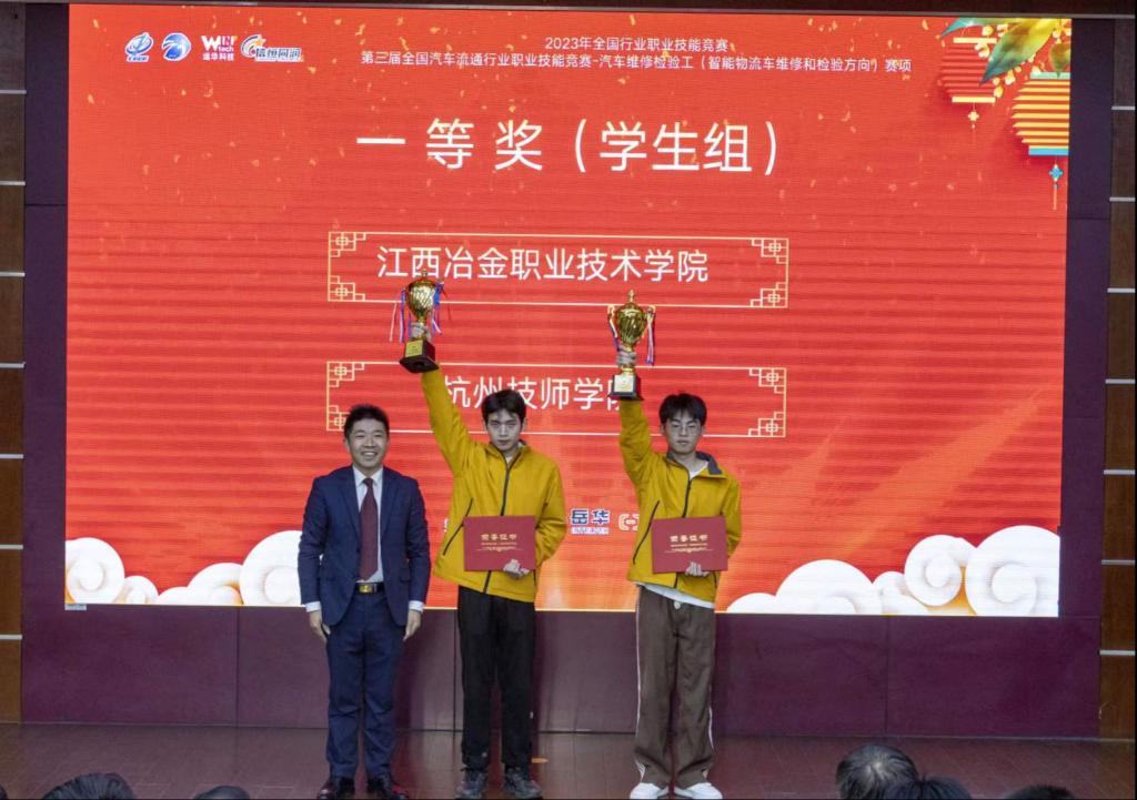 2023年11月27日,从杭州全国汽车流通行业职业技能竞赛汽车维修检验工(智能物流车维修和检验方向)赛项传来好消息,电气工程学院汽车技术运用工作室刘文峰同学喜获第一名。刘文峰同学的指导老师为罗良铨。