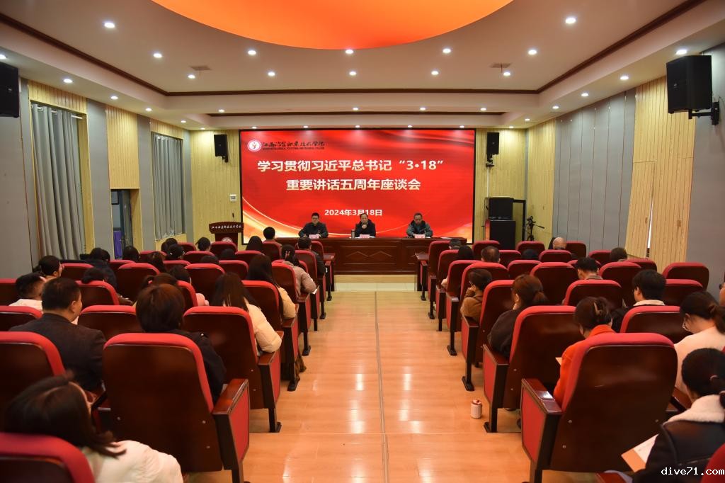 3月18日,学校在思政大讲堂召开学习贯彻习近平总书记“3·18”重要讲话精神五周年座谈会。党委副书记李茂旺出席并讲话,各党支部书记、相关部门负责人、全体思政课教师、各分院辅导员代表共80余人参会。座谈会由党委委员、党委宣传部部长孙毅主持。