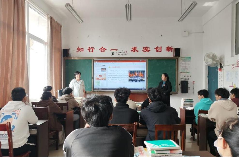 课堂上,刘洋老师讲述自己的军旅生涯经历,刘巧花结合故事讲授国家安全课程相关内容。她们共同打造的“双师同堂”,既结合了班级学生管理的实际,又夯实了思政课的厚度,生动的课堂教学深受学生们喜爱。