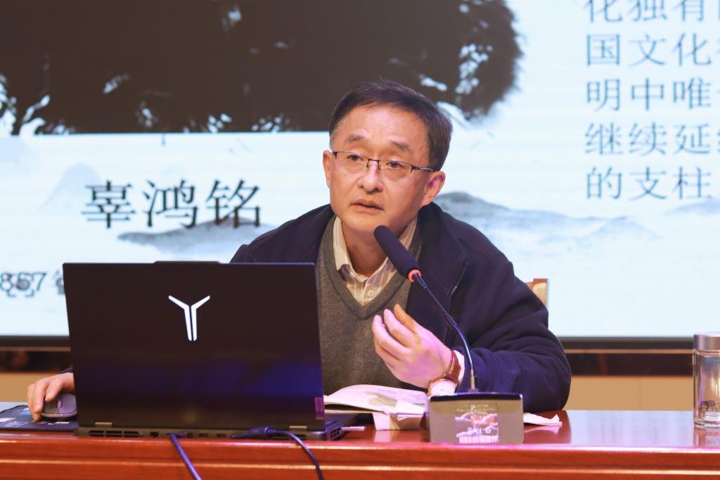 周峰老师通过文化中国、中国、中国文化这三方面来进行讲述。他分别列举了辜鸿铭的事例、关于中国传统文化的一系列电影、家族观念与道德观念来进行论述,以丰富的历史资料和深刻的学术见解,进一步增强了大家对传统文化的认知和文化自信。