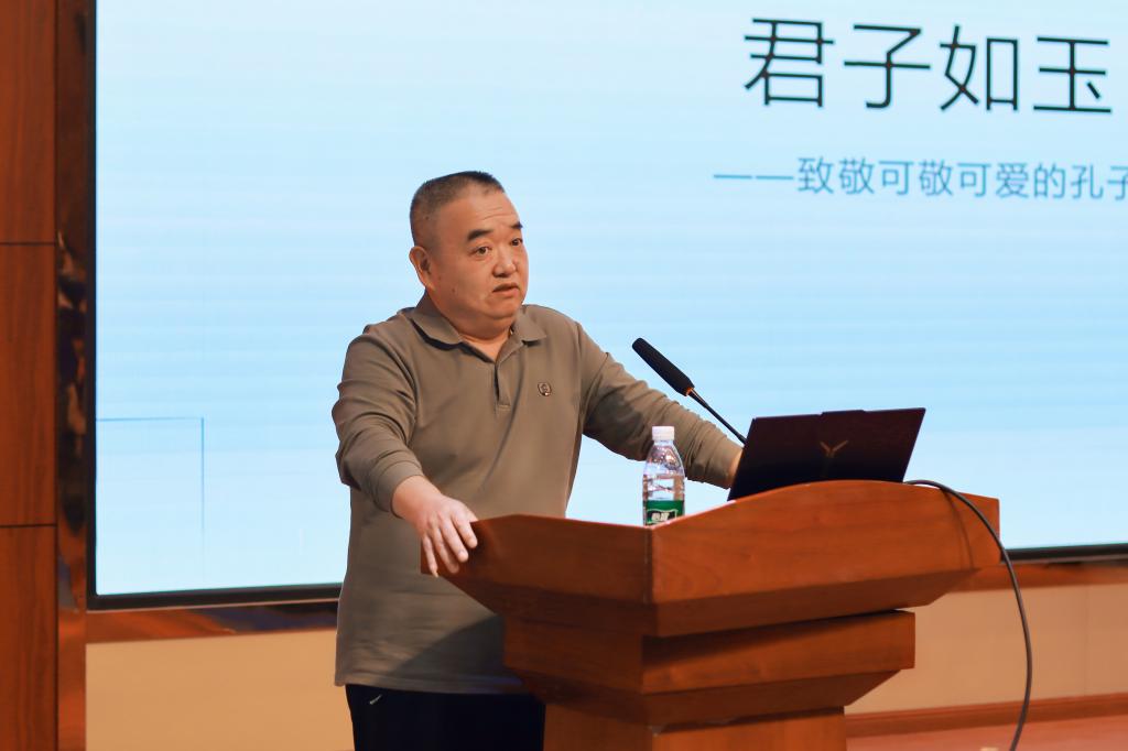 “君子如玉,温润而泽;君子如水,利物不净”,韩国华老师以君子的品质开场,随后,通过讲述孔子的生平轶事、教育理论、文化底蕴等方面的生动事例,展现孔子是一个有血有肉、心怀大爱的智者形象,让听众深切感受到了孔子既令人敬重又不乏可爱之处,为师生理解儒家思想的源头提供了一个新的思路。