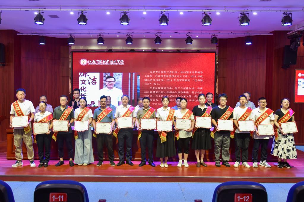 党委副书记李茂旺作总结讲话。他代表学校党委向受表彰的集体和个人表示热烈祝贺,并向全校党员致以节日的问候。李茂旺指出,过去一年,学校党委在省委教育工委正确领导下,深入学习贯彻党的二十大和二十届三中全会精神,坚持以习近平新时代中国特色社会主义思想为指导,聚焦“走在前、勇争先、善作为”目标要求,围绕“政治引领、标准驱动、目标导向、融入融合、品牌示范”党建工作思路,推动“党建强起来”“分院实起来”“教学硬起来”“学生动起来”四个目标实现,以高质量党建推动学校高质量发展。具体体现在“五个进一步”:突出政治引领,思想建设进一步加强;实施标准驱动,管理闭环进一步形成;坚持目标导向,责任担当进一步压实;聚焦融入融合,高效发展进一步推动;强化品牌示范,冶院特色进一步彰显。在此,他代表学校党委,向一年来为学校改革发展辛勤耕耘、无私奉献的同志们,致以崇高的敬意和诚挚的感谢!