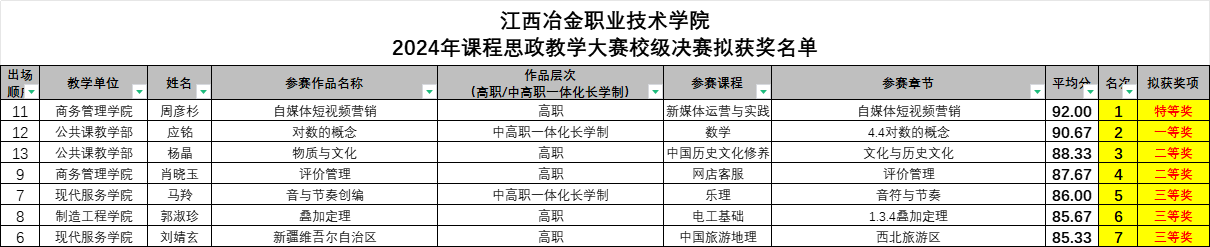 根据学校《关于开展taptap扫二维码2024年课程思政教学大赛的通知》文件要求,经评委专家现场评审和综合评议,2024年学校课程思政教学大赛拟评出特等奖1名、一等奖1名、二等奖2名、三等奖3名(名单见附件)。现予以公示,公示期为2024年12月6日至12月8日。公示期内,如对获奖结果有异议,请于12月8日前向纪委办公室或教务处办公室反映。