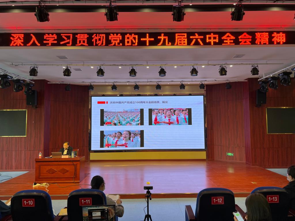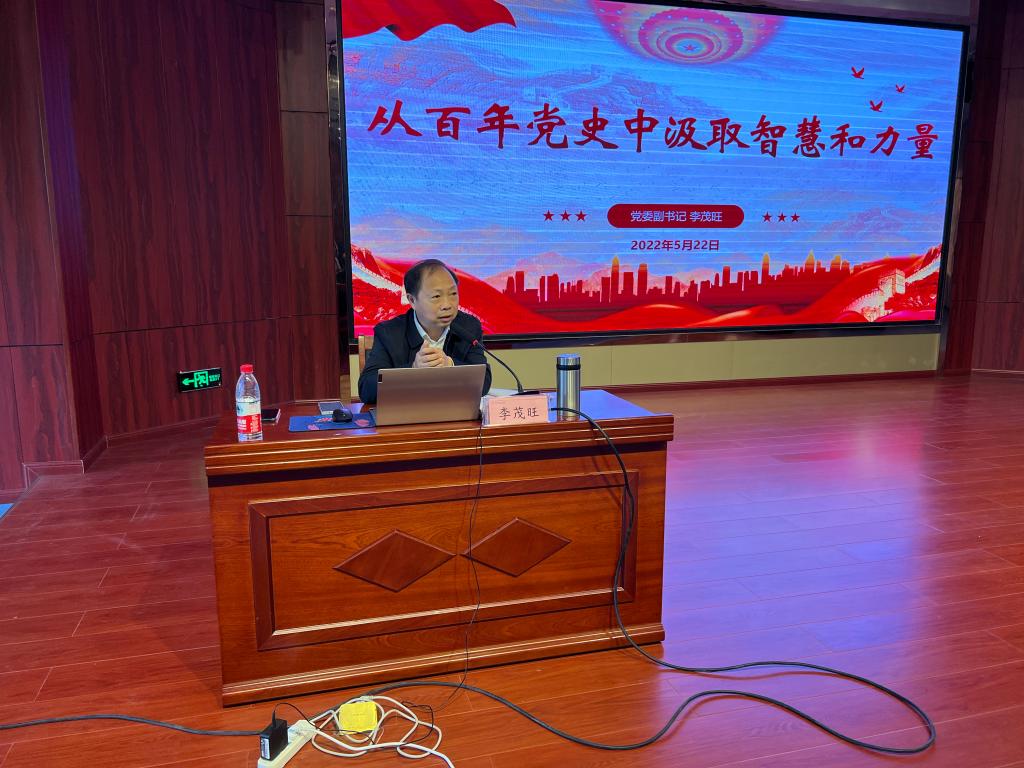 5月22日,在报告大厅,学院党委副书记李茂旺上《从百年党史中汲取知识和力量——深入学习贯彻党的十九届六中全会精神》专题党课。党委组织部副部长邬金凤主持本次会议,学院党员及入党积极分子到会学习。