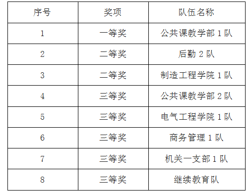 通过此次比赛,充分展示了教职工奋发向上的良好精神风貌,丰富了教职工业余文化生活。参赛选手们秉承“友谊第一,比赛第二”的原则,展示了教职工们团结、和谐、勇敢的精神。