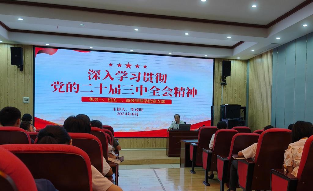 2024年8月27日下午,校党委副书记李茂旺给机关二支部全体党员在思政大讲堂上了一堂党课,题为“深入学习贯彻党的二十届三中全会精神”,为支部党员宣讲党的二十届三中全会精神。