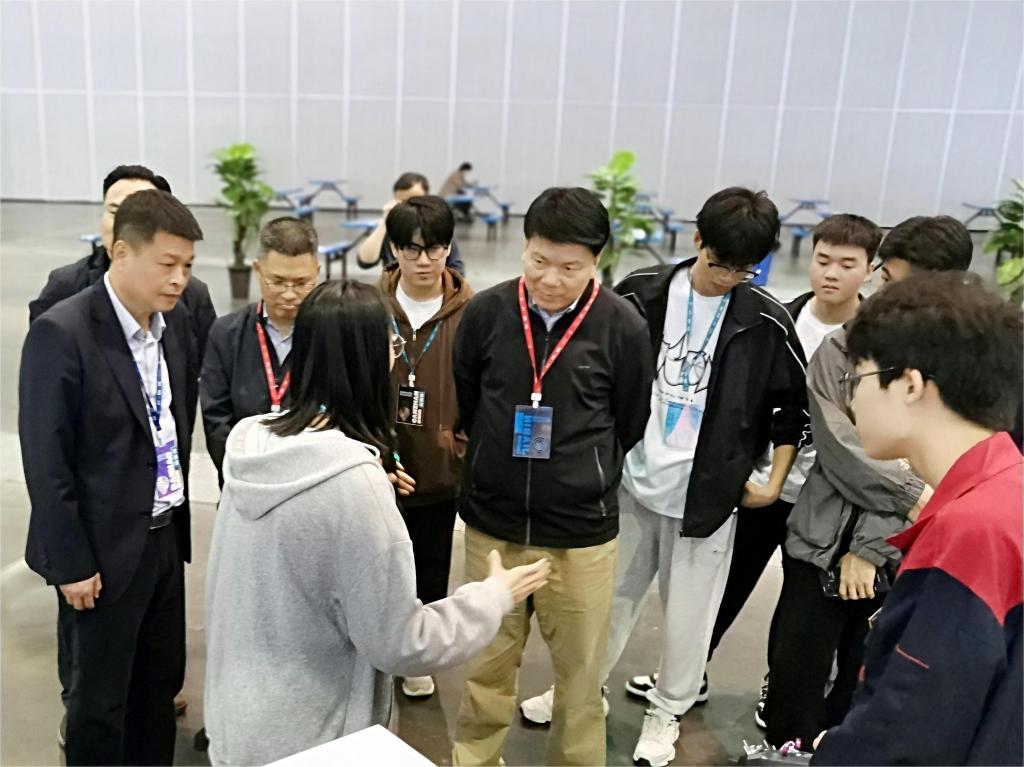 江西省国有资产监督管理委员会党委委员、副主任郑德才受邀参加了对接会开幕式。对接会开幕式结束后,郑德才来到我校展位参观。通过听取本校参展师生的讲解介绍,郑德才详细了解了学校钢铁智能冶金技术专业群的“钢铁智能冶金虚拟仿真(系统)”展示项目和工业机器人技术专业群的“再生提锂切割专家(装备)”展示项目。