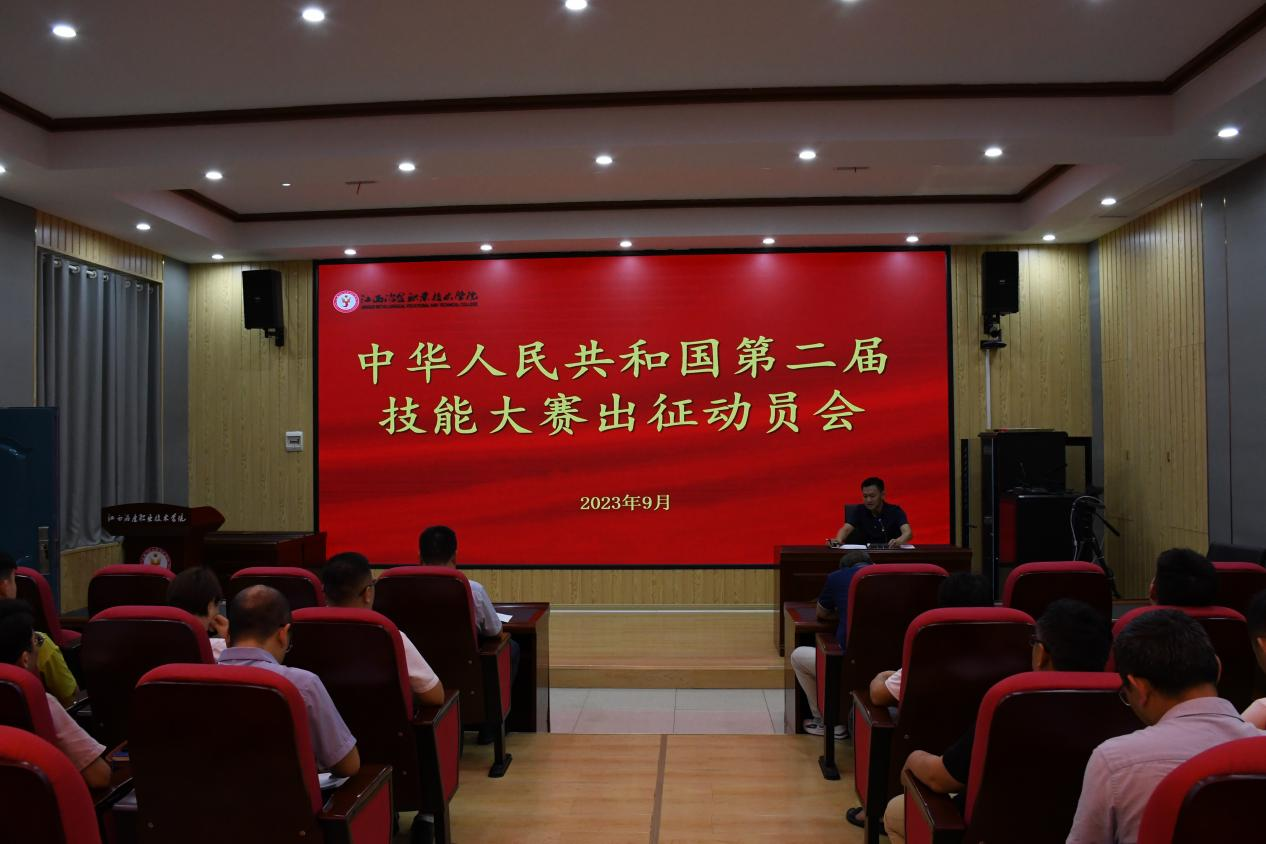 9月7日下午,学校在思政大讲堂召开全国第二届技能大赛出征动员会,为参赛代表队壮行。动员会由教务处处长何志昌主持,校领导郭志江、彭全出席,各赛项教练兼裁判、参赛选手参加。