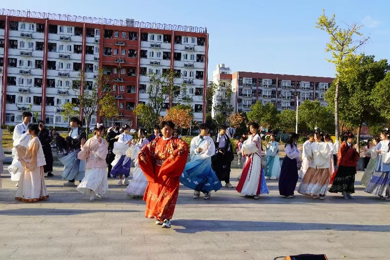 越罗衫袂迎春风,玉刻麒麟腰带红。汉服是时下许多同学的钟爱,也是中华优秀传统文化的一部分。身着汉服的同学们身着美雅端庄的汉服走秀一亮相,便吸引了全场目光。