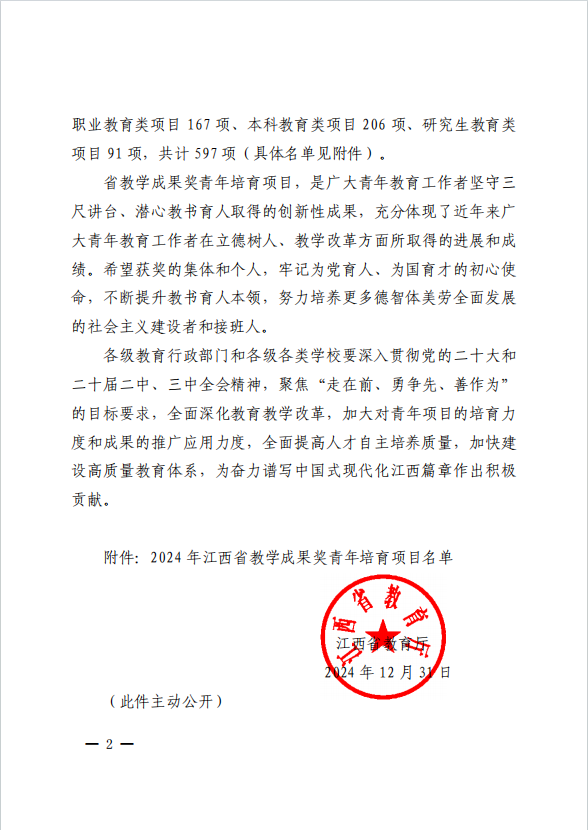 元月1日,接省教育厅通知文件,学校推荐申报的三个省级教学成果奖青年培育项目全部获批立项。