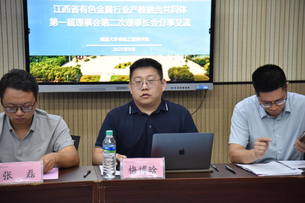 8月26日,江西省有色金属行业产教融合共同体第一届理事会第二次理事长会在学校召开。国家有色金属行业产教融合共同体常务副秘书长万红岩,理事长单位代表、江铜集团人力资源部总经理魏海彬出席会议,各副理事长单位领导专家参加会议。会议由副院长秦昊主持,院长潘山致欢迎辞。
