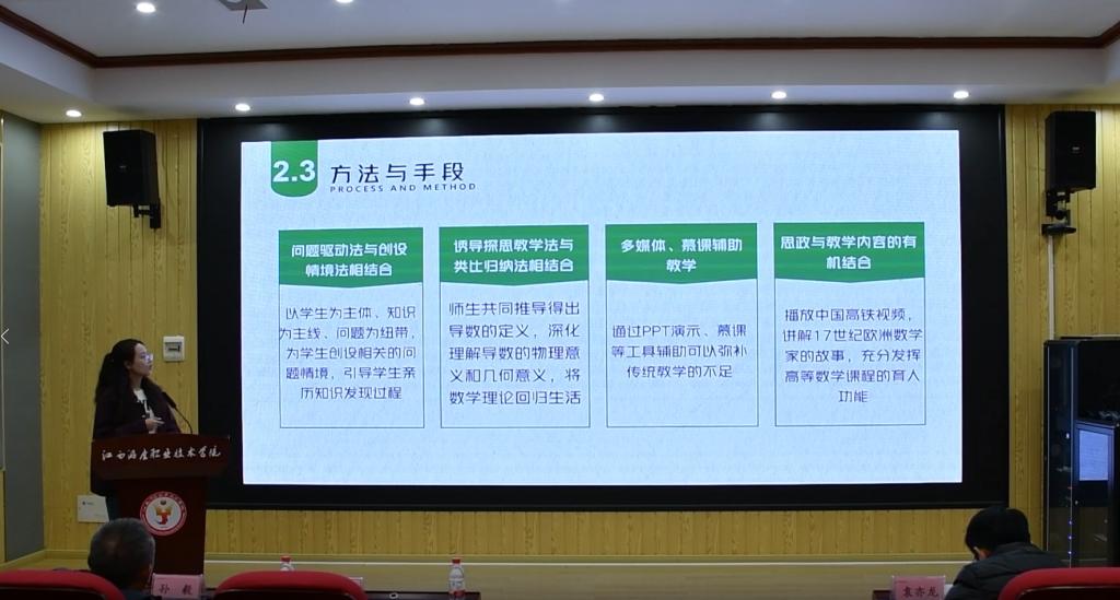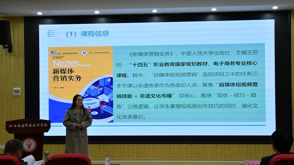 在决赛环节,参赛教师结合各自专业课程特点,将爱国情怀、法治意识、社会责任、红色文化、诚信文化和工匠精神等思政元素融入课堂教学设计,展示了课程思政教学的实际成效。经过现场评审,最终商务管理学院周彦杉老师讲授的《自媒体短视频营销》获得青年教师组特等奖,公共基础学院应铭老师讲授的《导数的定义》获得教师组特等奖。