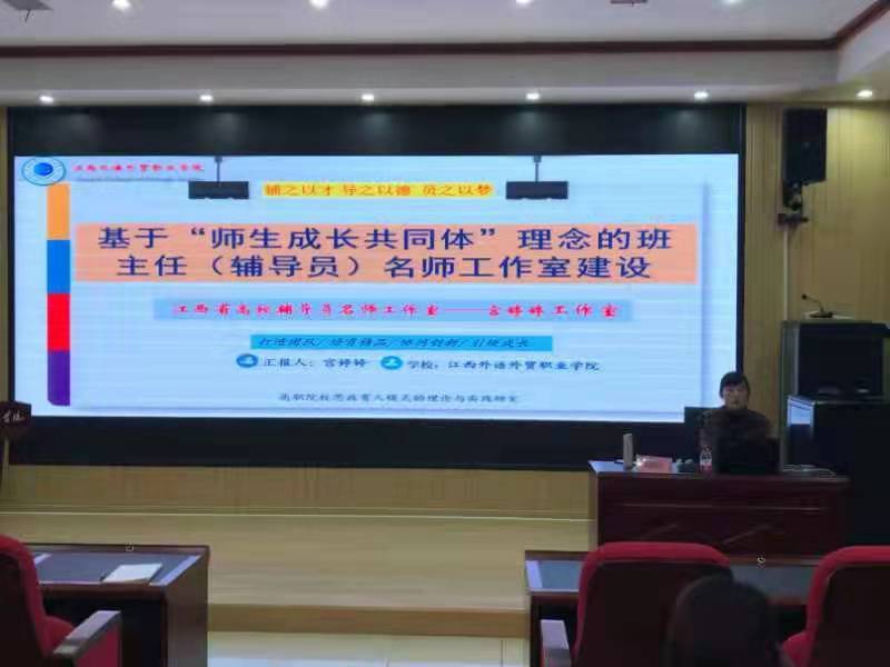 接着,特邀出席会议的江西外语外贸职业学院辅导员宫婷婷,做了“基于师生成长共同体理念下的高校辅导员名师工作室建设”和“辅导员与大一新生的十个一起”的专题讲座。她围绕辅导员工作室建设,结合工作实际和个人体会,进行了深入浅出的讲解,内容精彩,反响热烈。