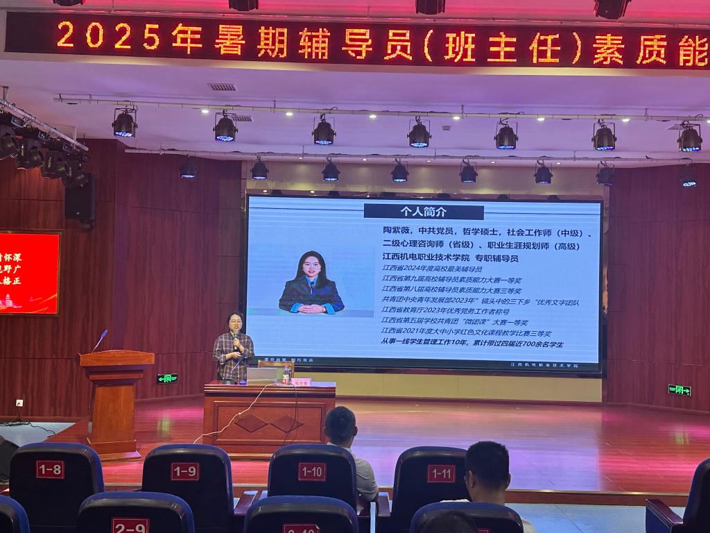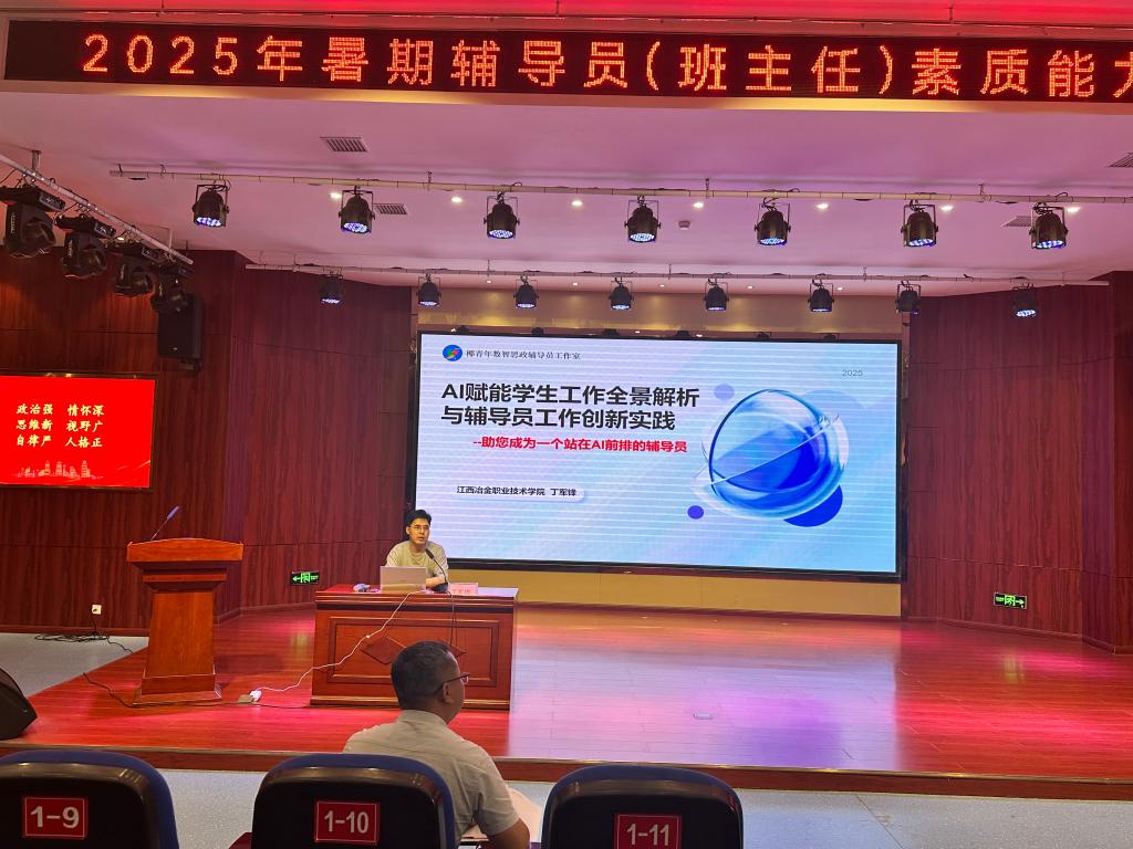 培训期间,吉安职业技术学院宣传部部长、学工部(处)负责人袁金星围绕《新时代背景下学生工作的实践与反思》作专题讲授;新余学院心理学副教授、国家二级心理咨询师杜富裕围绕《辅导员职业倦怠及自我关怀》作专题讲授;江西机电职业技术学院专职辅导员、2024年江西省最美辅导员陶紫薇围绕《勤学、善思、实干——做知信行相统一的新时代辅导员》作专题讲授;本校专职辅导员丁军锋围绕《AI赋能学生工作全景解析与辅导员工作创新实践》作专题讲授。
