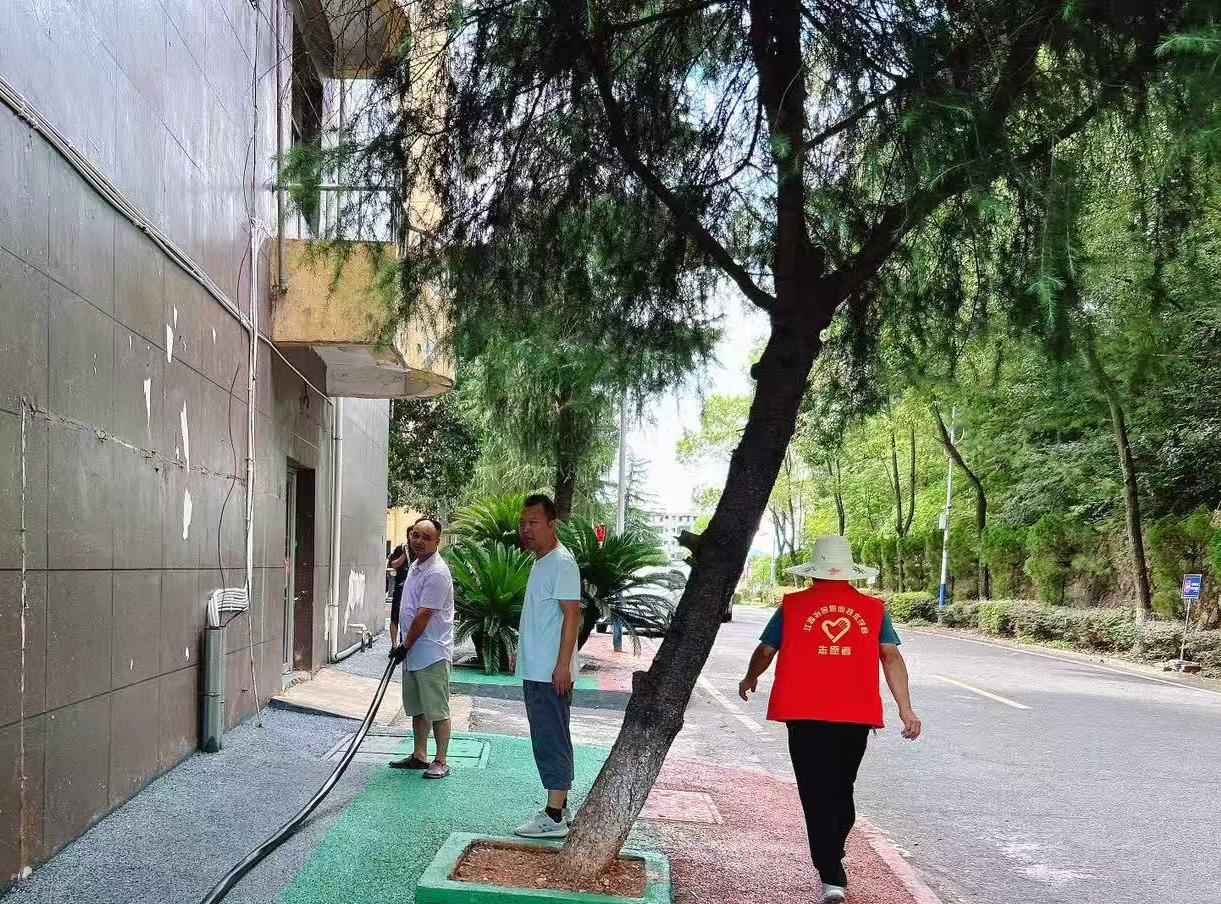 8月15日,后勤保障党支部在北校区9号学生宿舍楼西侧开展了一场别开生面的党员志愿服务活动。