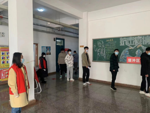 核酸检测现场,教师志愿者们积极配合医护人员,迅速进入工作状态,她们或协助采样人员扫码登记、录入信息;或分流待采人员、解答咨询;或维持秩序,耐心提醒学生全程佩戴口罩,保持一米距离,保证采样工作顺利进行。