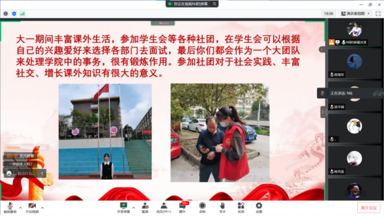 20黑色冶金技术1班郭荟雯和20材料工程技术班陈海军两位同学发言,与新生们分享了自己的成长经历、比赛经历和社团活动经历,还详细介绍了比赛类型、自我提升的方式,让新生们对大学学习和生活有了更充分的了解。