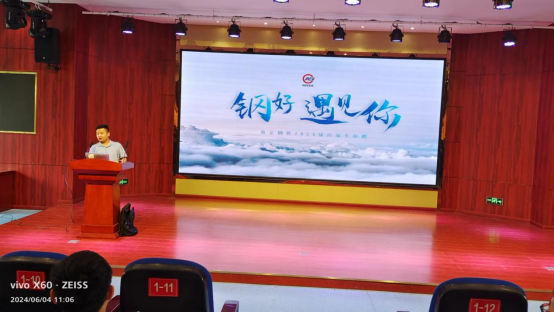 2024年6月4日,受学校邀请,南京钢铁公司人力资源部副部长孙斌一行4人来校考察,洽谈校企合作事宜,进行招聘宣讲和面试。