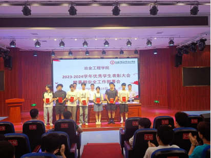 会上,卢新春宣读了《冶金工程学院关于表彰2023-2024学年优秀学生的决定》。随后,各位老师为获奖学生进行颁奖,全场热烈鼓掌向获奖的同学们表示祝贺。