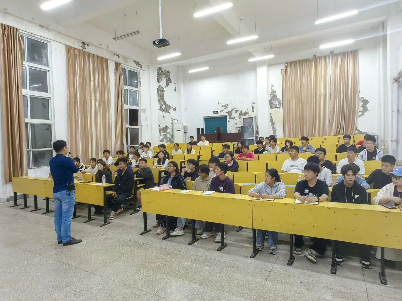 会上,黄志兵讲话。他首先对各位新生班班长、团支书的当选表示祝贺,对各位老生班班长、团支书的工作给予肯定。随后,他总结了前期工作,梳理了当前班级管理中存在的问题,提出了四个要求:一是加强学风建设。各班级要积极配合辅导员工作,确保学生上课前排就座,手机入袋,认真听讲。班长、团支书要发挥模范带头作用,确保执行到位;二是高度重视宿舍卫生与安全。班干部要定期检查宿舍卫生,严格排查违规电器,维护寝室安全,妥善处理寝室内部人际关系;三是警惕电信网络诈骗。班干部要时刻保持警惕,做到及时发现、及时上报;四是关注班级成员心理健康。要及时了解班级同学的情况与状态变化。