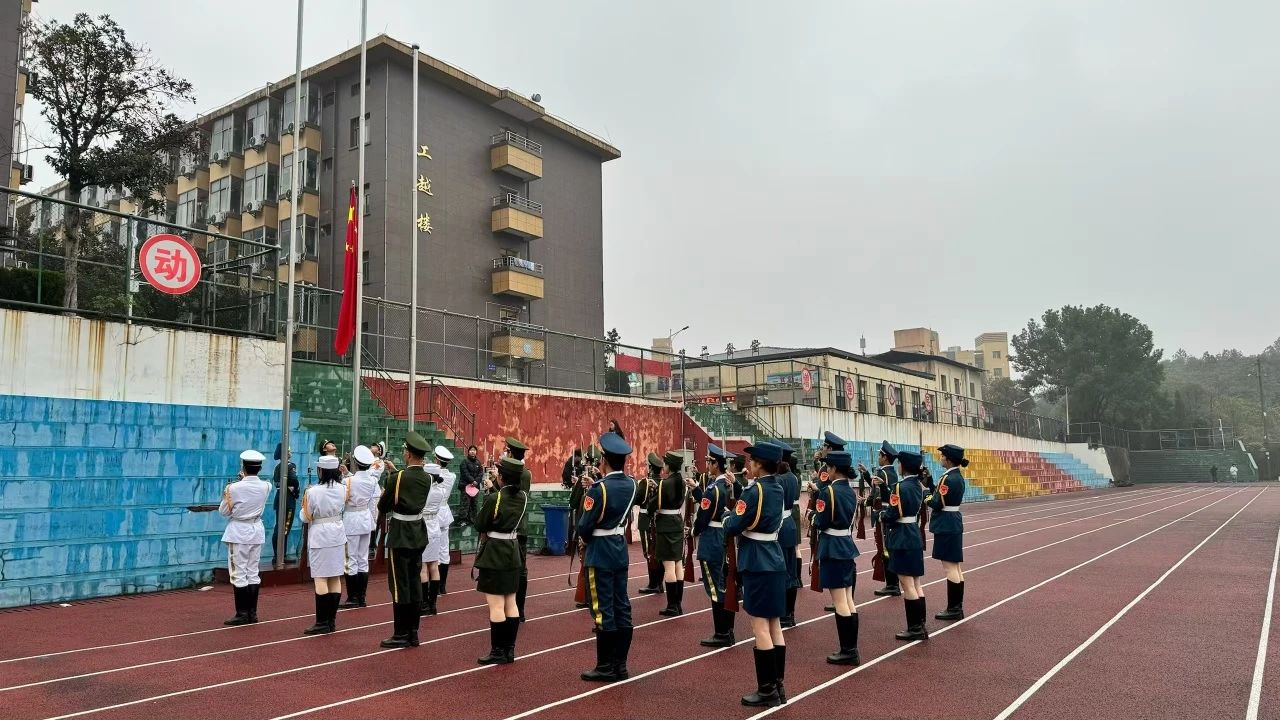 晨曦微露,国旗护卫队迈着整齐有力的步伐,护卫着五星红旗走向升旗台。他们身姿挺拔,步伐坚定,展现出了高度的纪律性与使命感。在雄壮激昂的国歌声中,五星红旗冉冉升起,全体师生面向国旗行注目礼,齐声高唱国歌,嘹亮的歌声在校园上空久久回荡,表达了师生对祖国的深切热爱与崇高敬意。