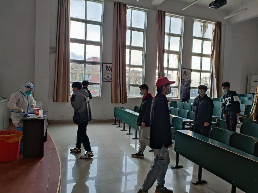 检测前,志愿者们做好准备工作,有志愿者负责引导学生戴口罩和排队,间隔一米距离,避免出现扎堆聚集的情况,有志愿者负责测量学生们的体温,有志愿者负责检查学生们的赣通码。分院党员教师和辅导员在现场维护秩序,组织学生们有序进行检测。医护人员不辞辛苦,规范熟练地进行采样,检测全程一人一消毒,相距间隔一米,整个核酸检测过程高效有序。检测后,要求全体人员即检即走,减少人群聚集。