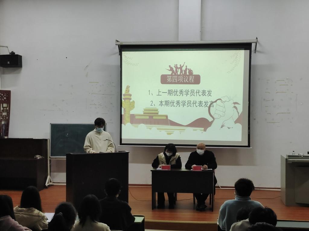 随后,邓纪纲宣读了对优秀学员进行表彰的通知。其中结业学员42名,优秀学员10名。邓纪纲为优秀学员颁发荣誉证书,并与优秀学员合影留念。最后,邓纪纲讲话。他希望各位学员,通过本次学习,丰富政治理论知识,增强政治素养。他要求学员,要牢记历史使命,认真学习践行习近平新时代中国特色社会主义思想,成长为优秀的青年马克思主义者。学校正值疫情防控严峻时期,作为大学生骨干,要遵守疫情防控规定,增强防护意识,积极参与分院疫情防控应急工作。
