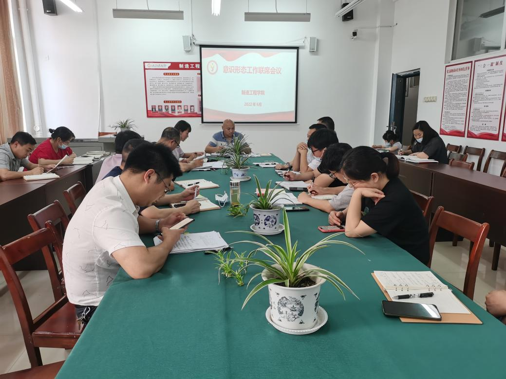 【制造工程学院邹小龙报道】2022年6月7日,制造工程学院在新2教党员活动室召开意识形态专题研判会。会议主要讨论分院第二季度的意识形态工作开展情况。会议由分院党支部副书记邓纪纲主持,支委成员、各教研室主任、团总支书记和黄贤振老师参加。