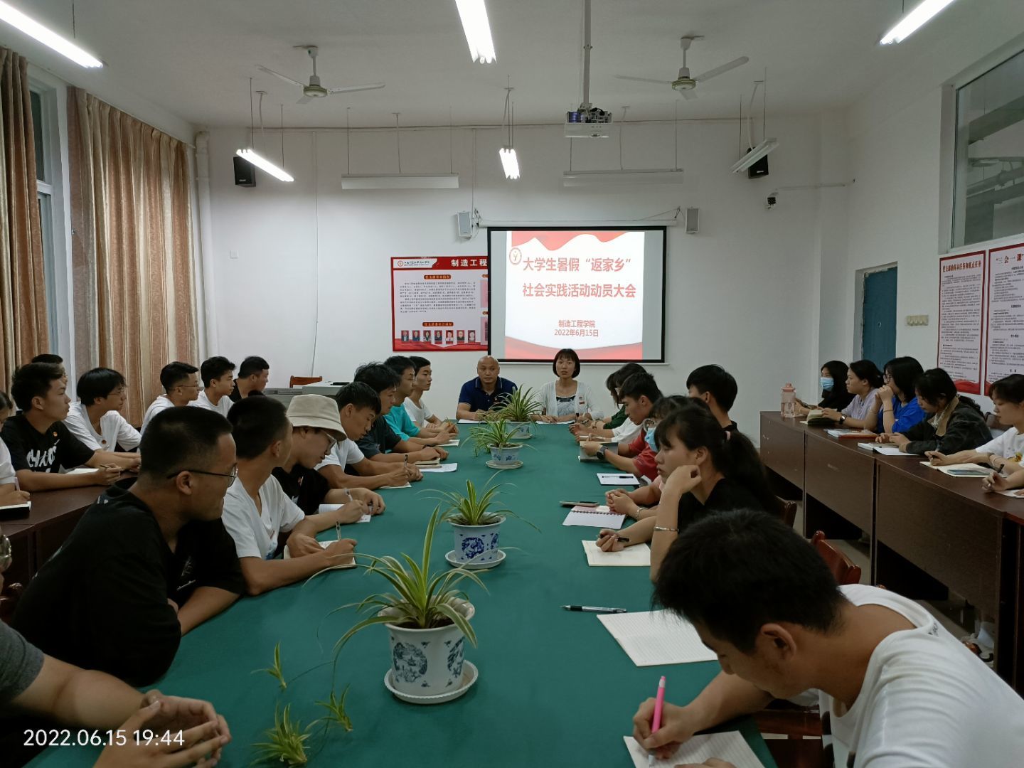 【制造工程学院王雨报道】6月15日晚,在新二教党员活动室,制造工程学院召开大学生暑假“返家乡”社会实践活动动员大会。大会由分院团总支书记王雨主持,分院党支部副书记邓纪纲出席,分院入党积极分子和各班优秀团员代表共计50余人参加大会。
