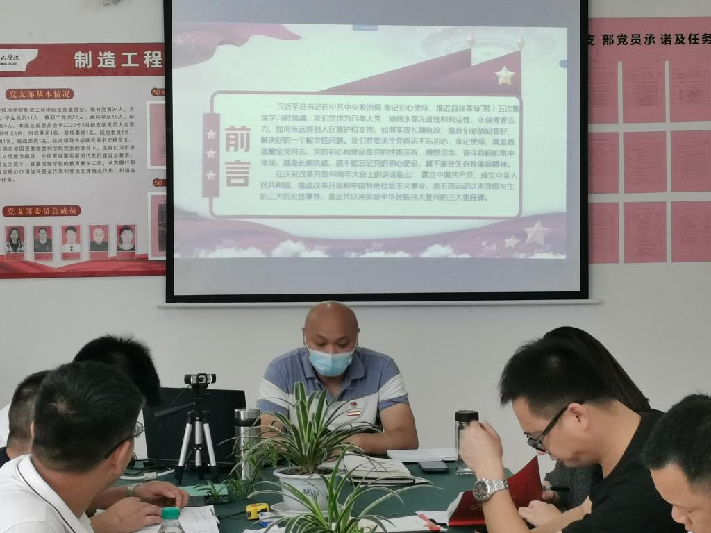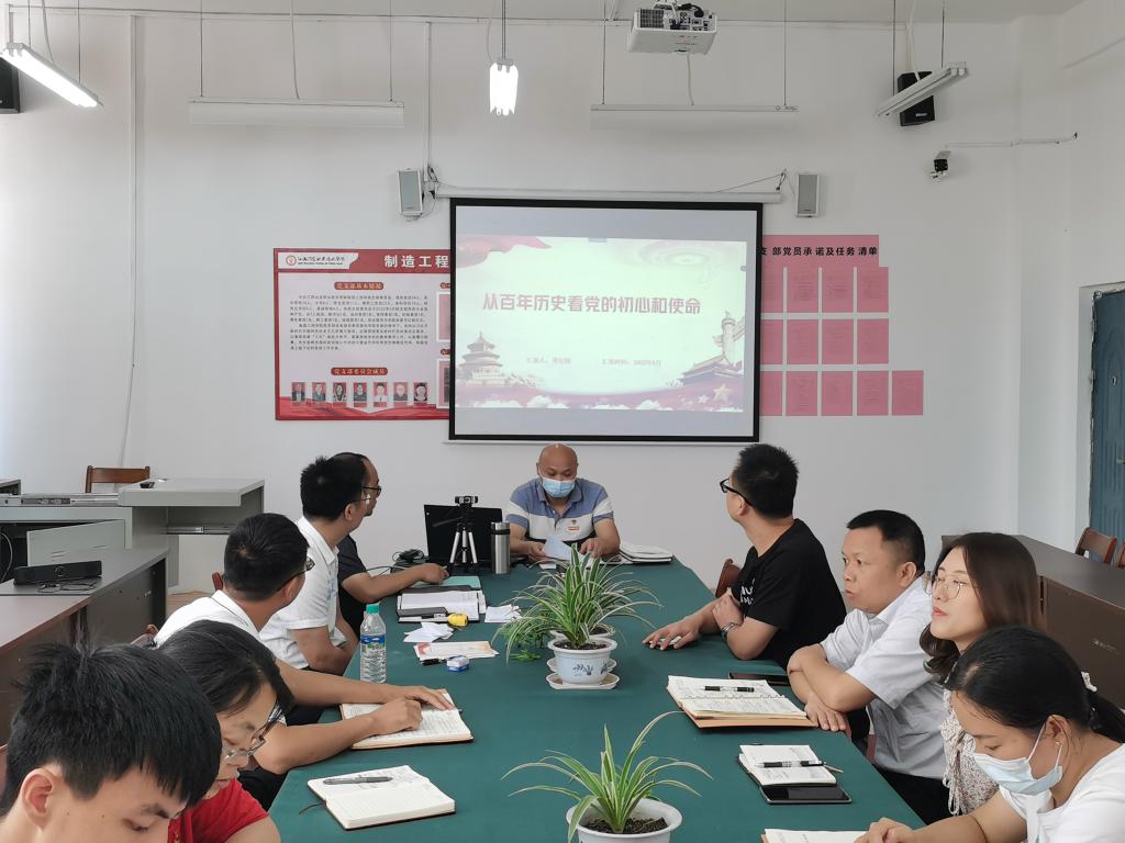 【制造工程学院邹小龙报道】2022年6月27日,新二教党员活动室,制造工程学院党支部副书记邓纪纲给全体党员上了一堂别开生面的党课,内容是《从百年历史看党的初心使命》。