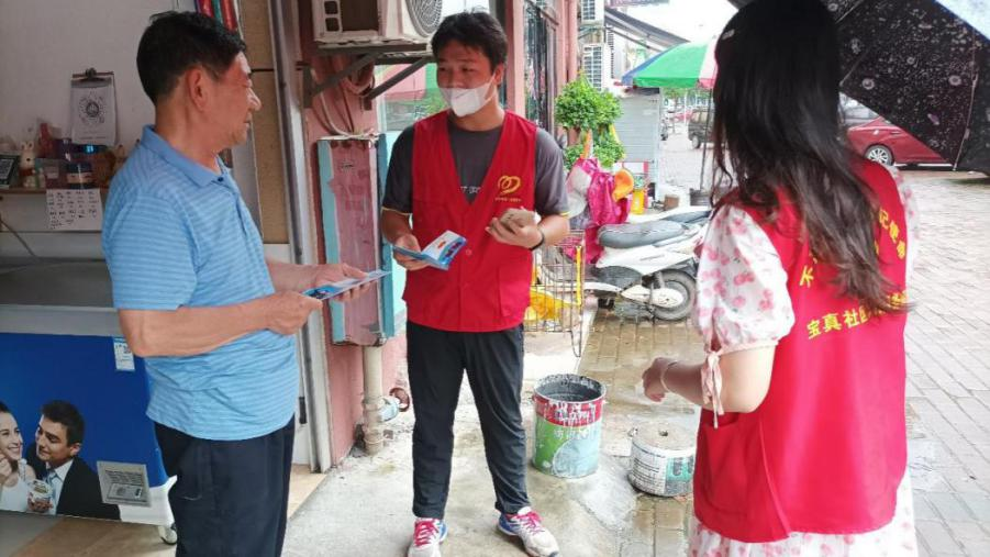 夏季天气炎热,用电量激增,火灾隐患多,火灾易多发,因此夏季预防火灾也尤为重要。队员张宝文向维修店大叔普及防火安全知识,讲解家庭防火措施,以及居家或外出时如何安全用电用火。队员王发权也向居民宣传突发火灾时的应急避护措施。