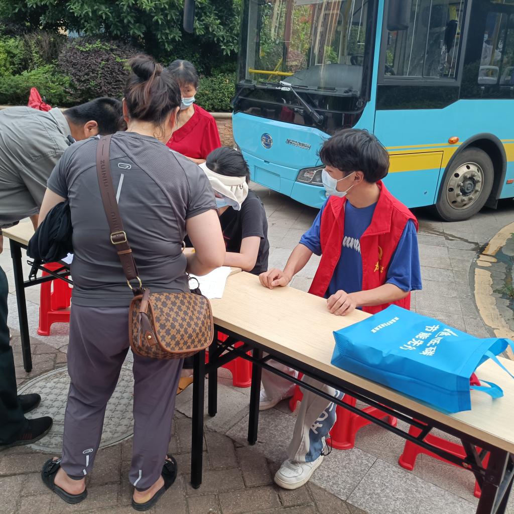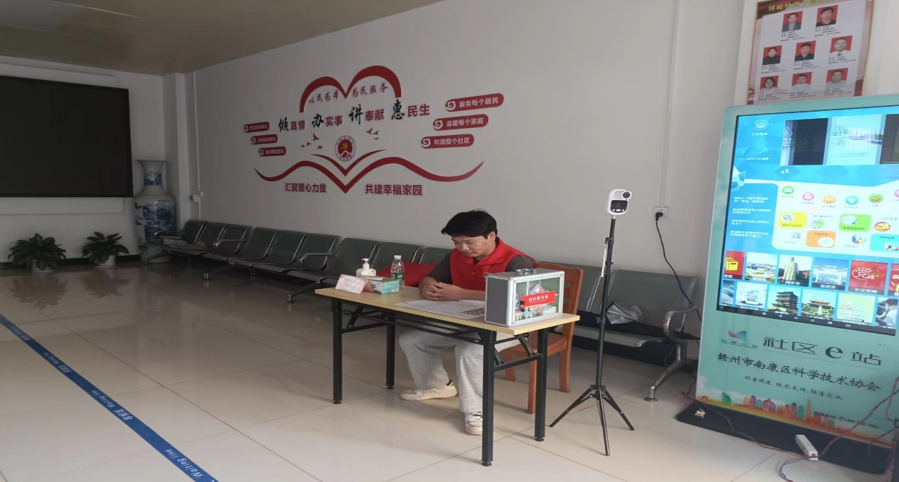 来自21工业机器人大专2班的蓝涛同学在暑期回到家乡江西省赣州市南康区,作为大学生志愿者参加了坪岭社区疫情志愿服务工作,主要是在社区负责检查居民健康码,测量体温,登记电子与纸制来访信息等。