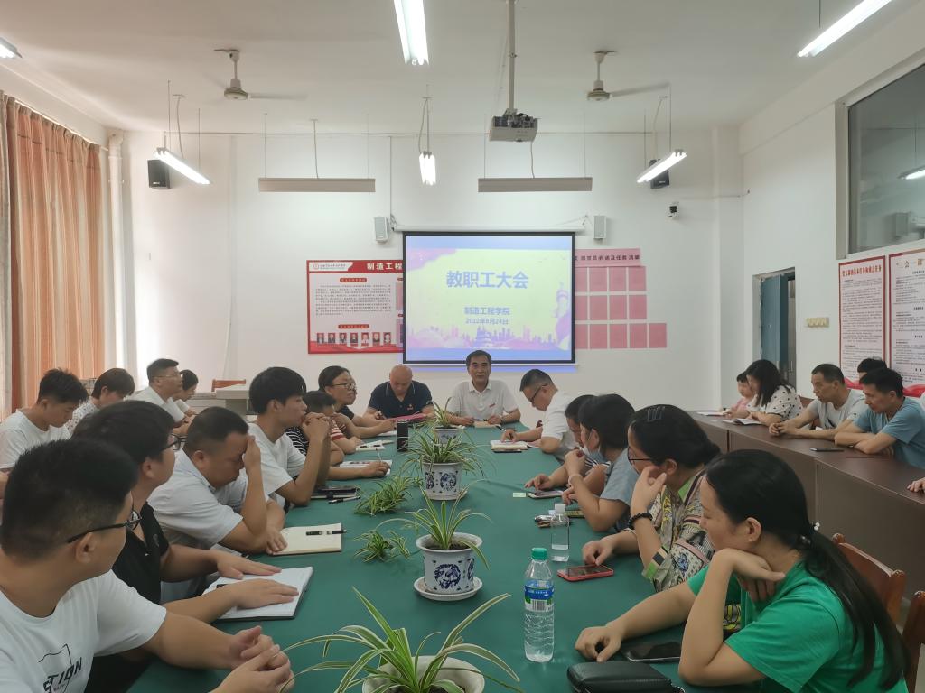 【制造工程学院邹小龙报道】2022年8月24日,在新二教党员活动室,制造工程学院召开了新学期教职工大会。会议由党支部副书记邓纪纲主持,全体教职工参会。