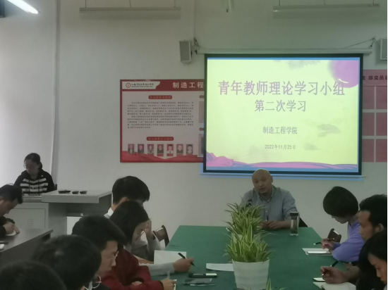 11月25日,制造工程学院在新二教党员活动室召开青年教师第二次理论学习会。会议由党支部副书记邓纪纲主持,全体青年教师参会。会议主题为学习《中国共产党章程》。