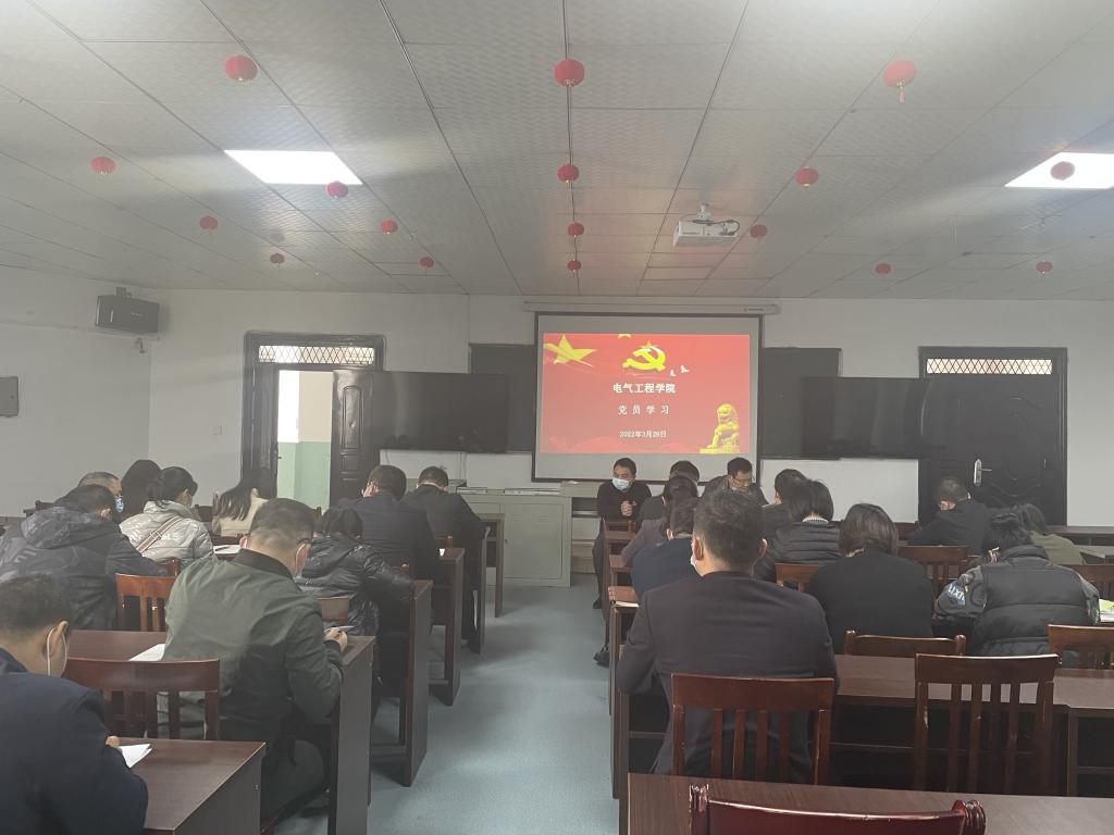 3月29日下午,电气工程学院党支部召开了全体党员大会,会议学习了省委书记在省委教育工作领导小组2022年第一次全体会议上的讲话精神。分院党支部书记刘绍彬主持会议,党支部全体党员参会。