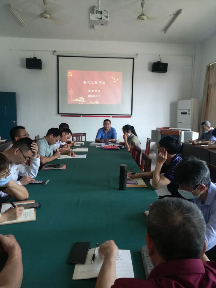 6月7日下午,电气工程学院在老四教党员活动室102召开6月份政治学习会议 ,会议由电气工程学院党支部书记刘绍彬主持,全体教职工参加。
