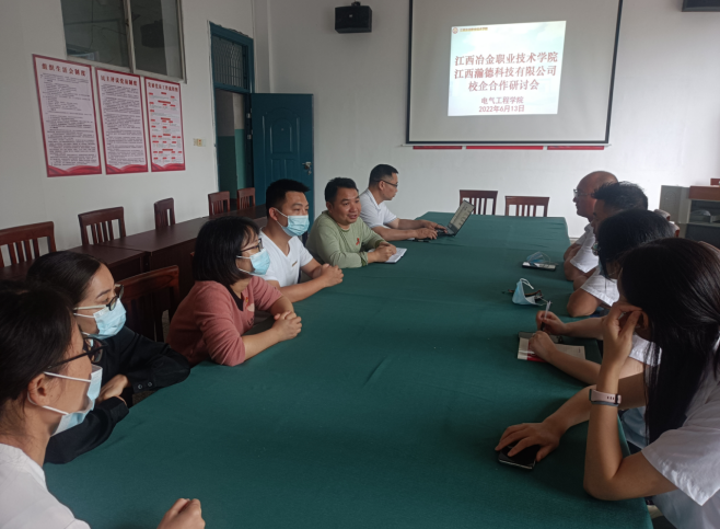 2022年6月13日上午,江西瀚德科技有限公司副总经理杨德会一行四人来学院考察。客人参观了黄辉大师工作室、丁宇宁名师工作室、钳工实训室等实习实训场所,高度评价了学院的教学水平,并表示,愿意进行校企合作,共建人才培养新模式。电气工程学院院长黄锦文等接待了杨德会一行。双方就校企合作进行了研讨交流。