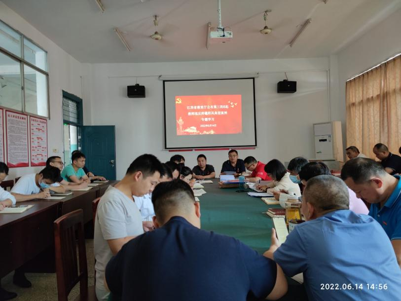 2022年6月14日下午,在明辨楼102党员活动室,电气工程学院组织全体教师学习“江西省教育厅公布第三批6起教师违反师德师风典型案例”。学习活动由分院支部书记刘绍彬主持。