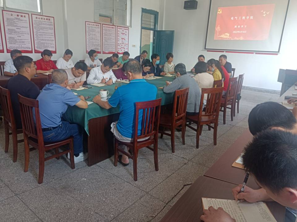 2022年6月14日下午,电气工程学院在明辨楼106召开政治学习会议。会议由党支部书记刘绍彬主持,全体教师参加。