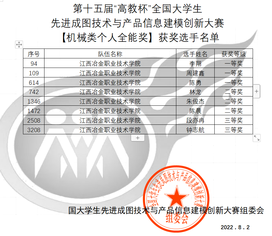 近日,第十五届“高教杯”全国大学生先进成图技术与产品信息建模创新大赛落下帷幕,经校级选拔、省级竞赛,我校共遴选出8名学生组队参加全国决赛。获得机械类个人全能奖一等奖3个,二等奖3个,三等奖2个,同时学院获得机械类团体二等奖。
