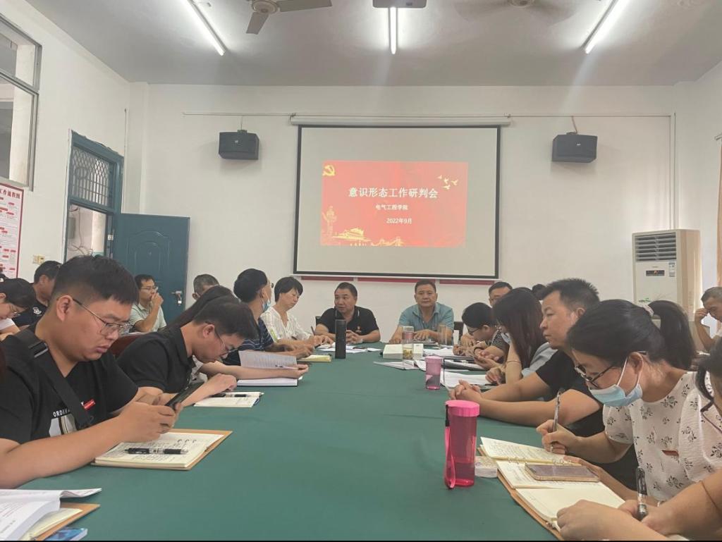 9月13日下午,在明辨楼102,电气工程学院召开第三季度意识形态工作研判会。会议由分院党支部书记刘绍彬主持,分院全体教师参加。