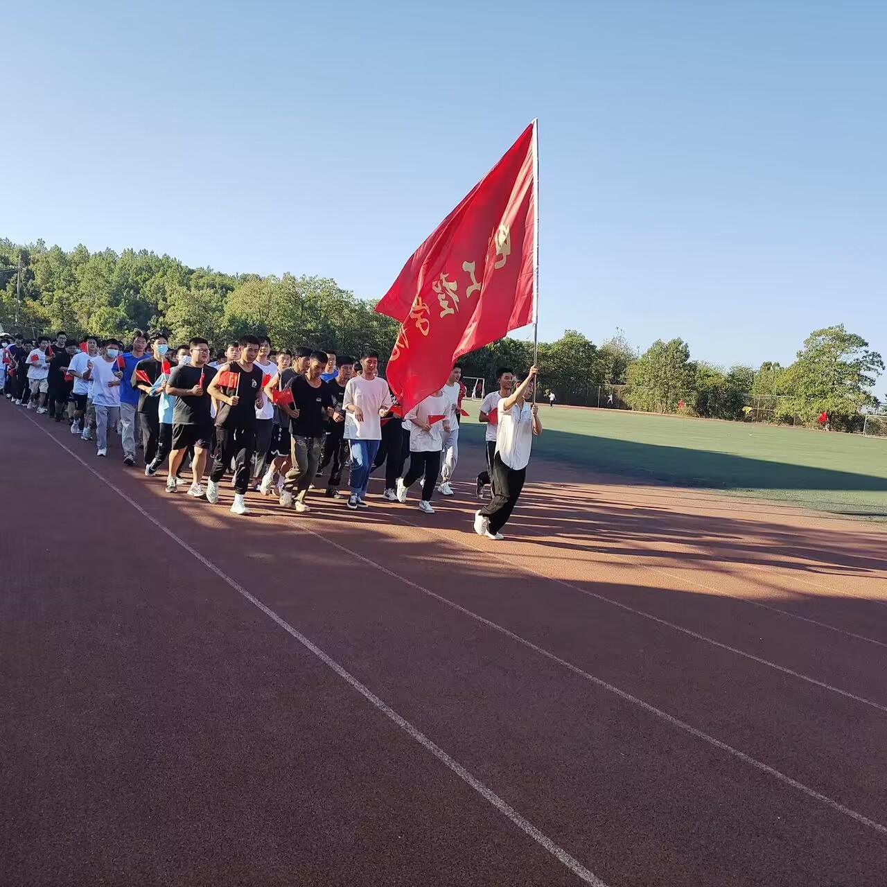 为进一步弘扬社会主义核心价值观,引导学生传承红色基因,弘扬爱国情怀,2022年10月2日上午,电气工程学院在田径场举办以“喜迎二十大,运动向未来”为主题的集体跑和唱红歌活动。