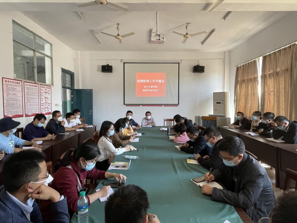 10月21日下午,电气工程学院在明辨楼党员活动室102召开了疫情防控工作专题会,分院院长黄锦文、全体辅导员、班主任参加了会议。