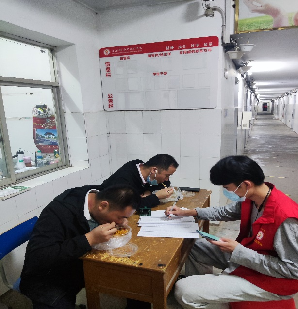 到了吃饭时间,老师们化身“小喇叭”,召集同学们及时有序排队买饭。在核酸检测过程中,老师们化身“大白”,协助医务人员录入信息,消毒消杀等。